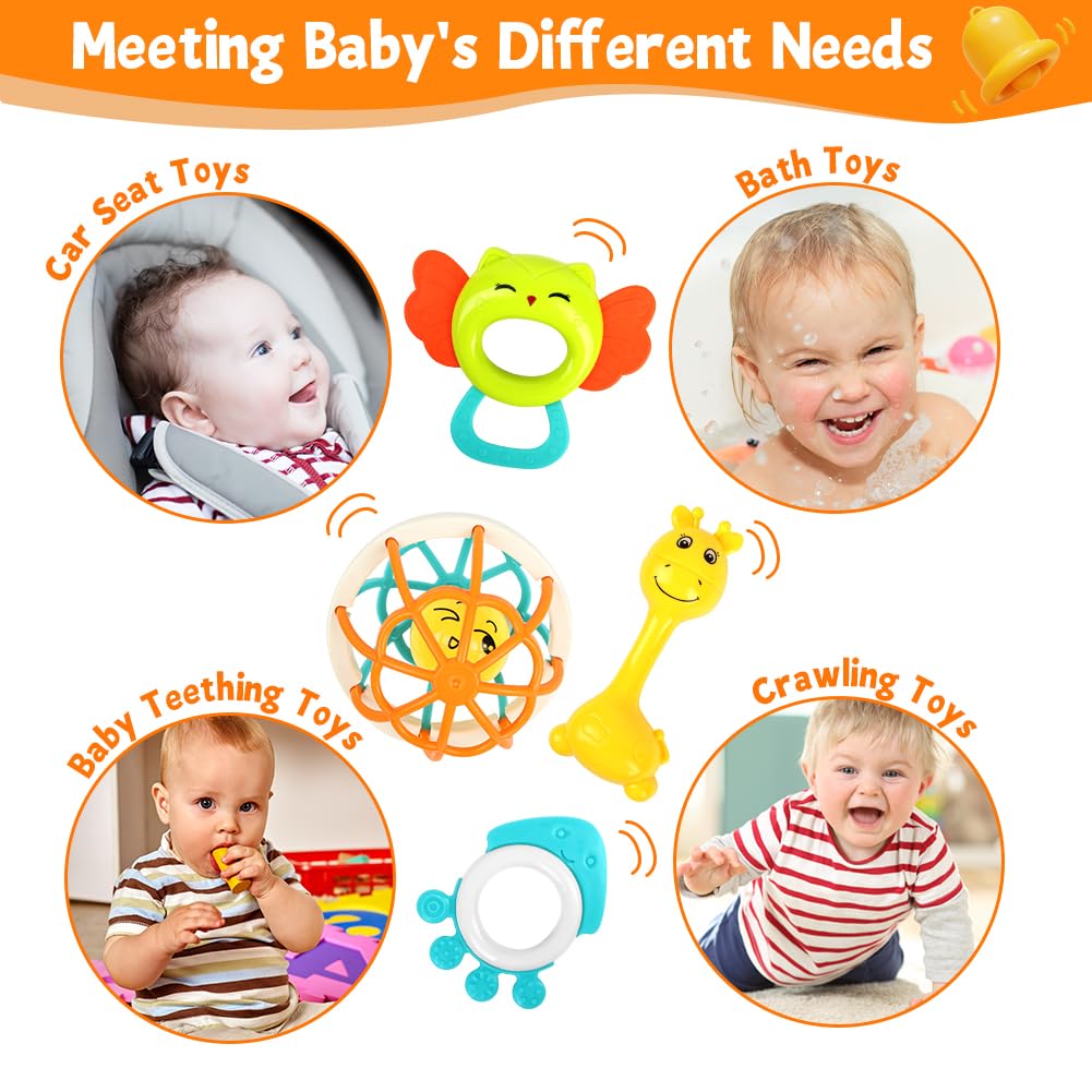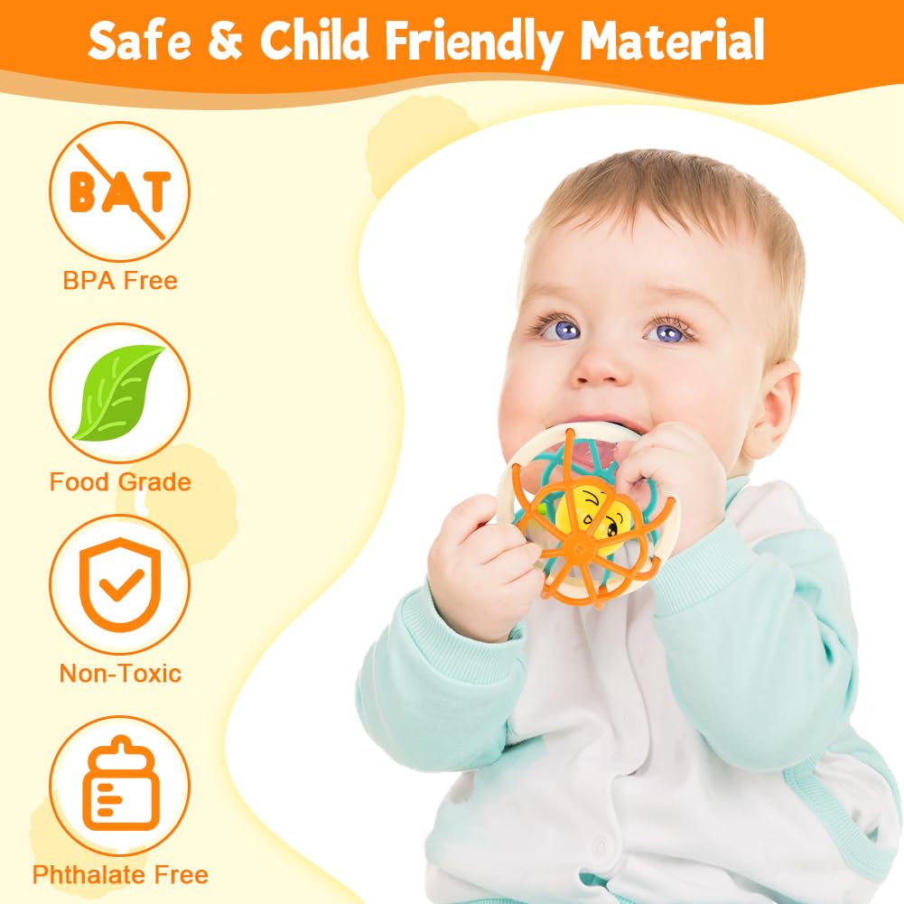 【Small and portable】These newborn toys are the right size for baby’s hands and are lightweight, making them perfect for chewing, grasping and spinning. The baby rattle is easy to carry and can be put in a handbag, allowing your baby to enjoy happiness on the go.